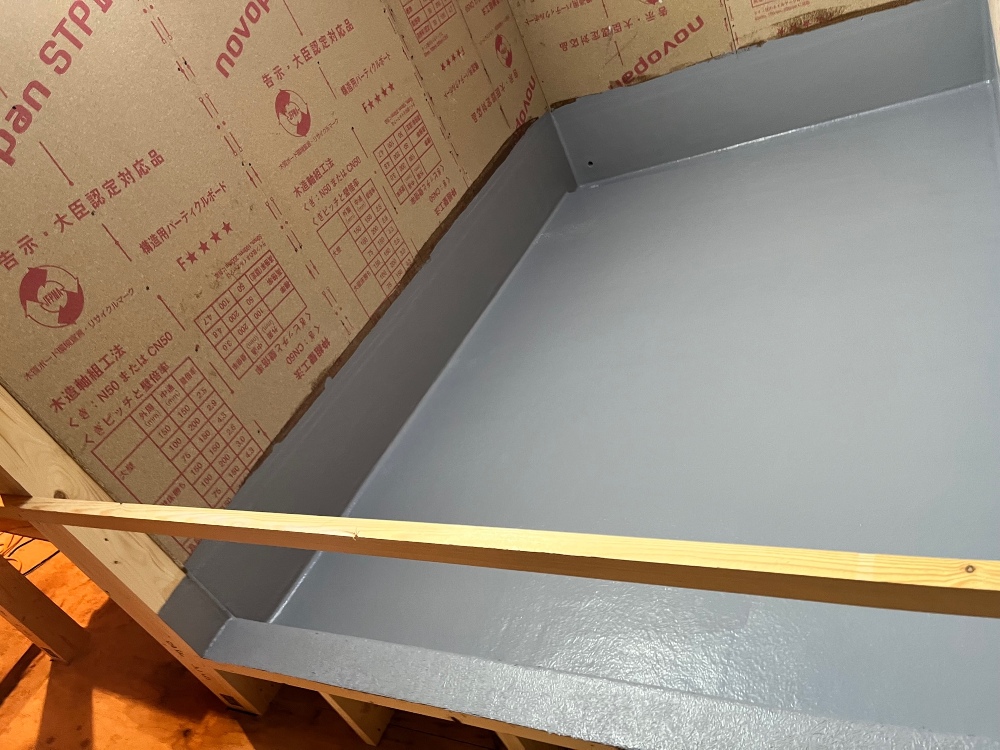 雨対策として、床板にブルーシートをしてあります。