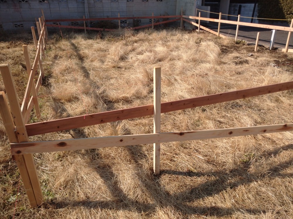 この遣り方を基準として、基礎の位置や高さを確認し施工します