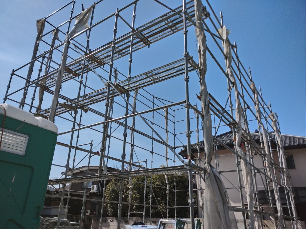 基礎(建物)の位置出しで、『遣り方』作業をしました。