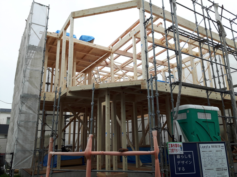 天候が悪かったですが、無事に上棟作業完了です。家のかたちが見えてきました!