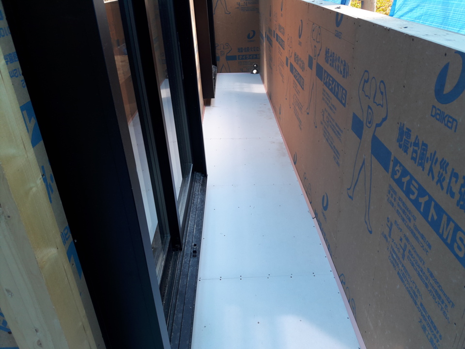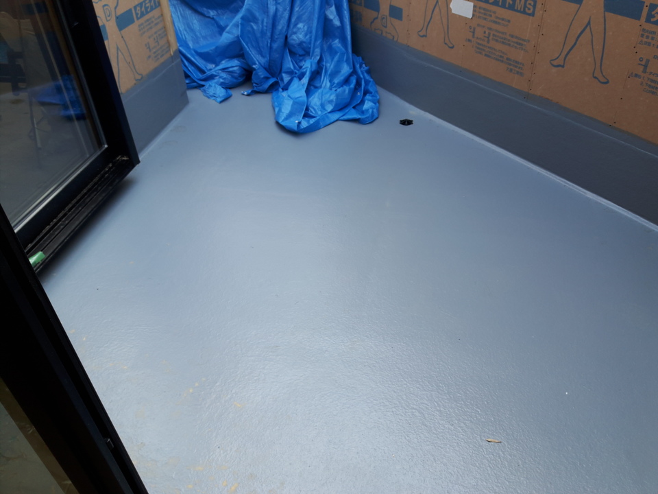 バルコニーの下地が完了し、仕上げの防水工事を行いました。