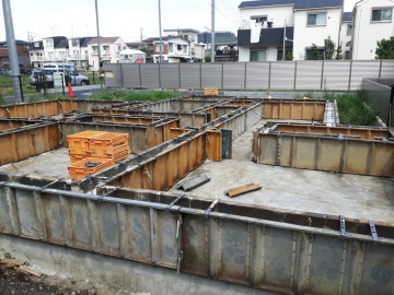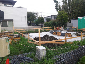基礎工事着工前に材木を使用した囲いを作ることです。