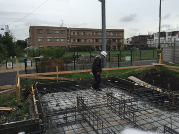 設計士作成の基礎伏図に記載のある配筋を現場にて再現していきます。