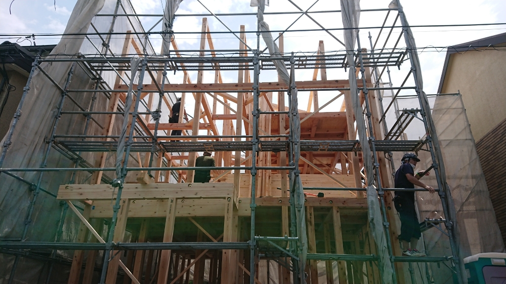 建物を建てる前に足場を組むことによって、転落のリスクを下げたり、足場があるために上棟の作業がしやすくなります。