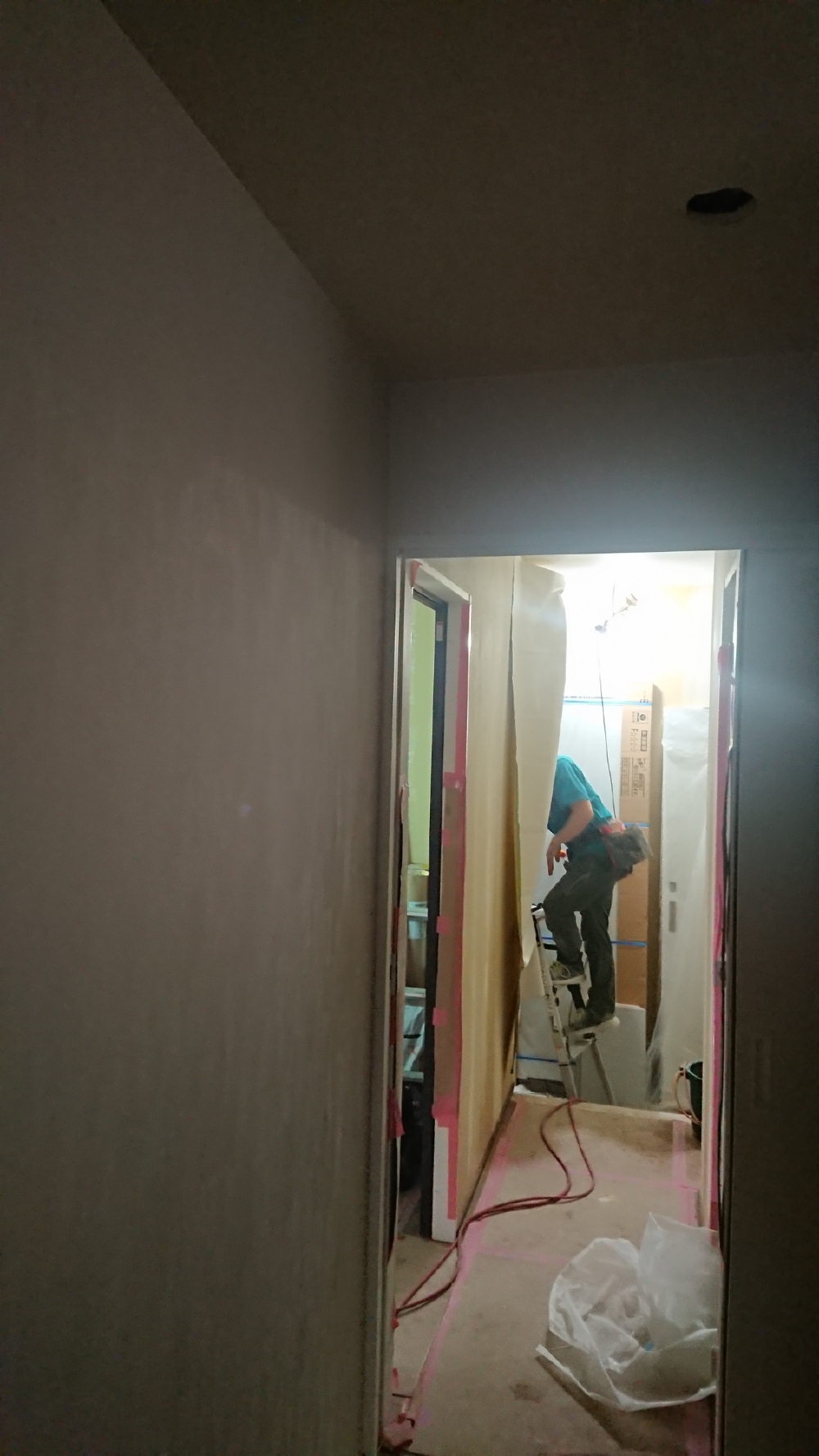 クロスの下地処理が終わりましたので、実際にクロスを貼っていきます。