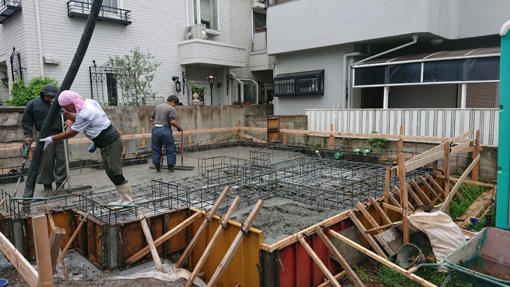 配筋検査を合格しましたので、耐圧盤の生コンを打設しました。