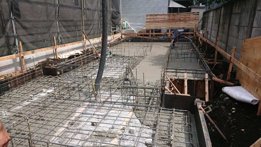 問題なく合格しましたので、耐圧コンクリートを打つ工程に進みます。