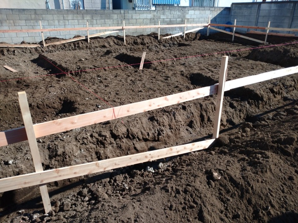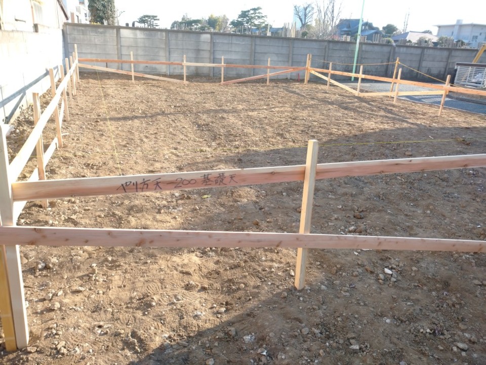 基礎工事が着工する前の【遣り方】を施工しました。