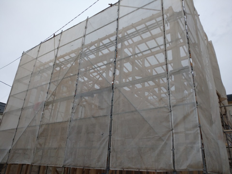 先行足場を建て、木工事へと進みます。