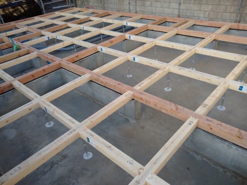 基礎工事が完了し木工事の最初となる