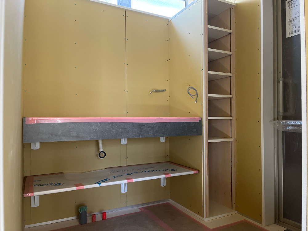 耐圧盤の生コンも乾いてきたら、立上り部分の枠組みをおこないます。