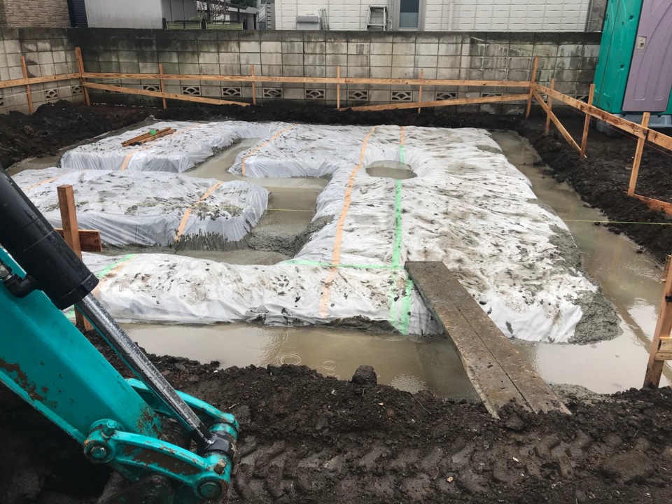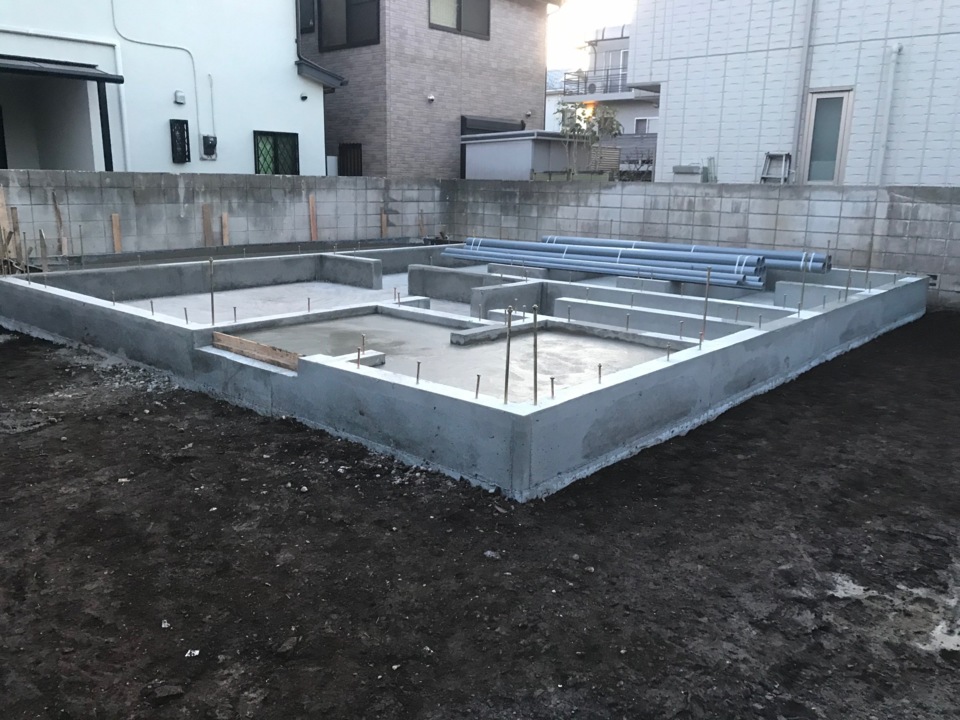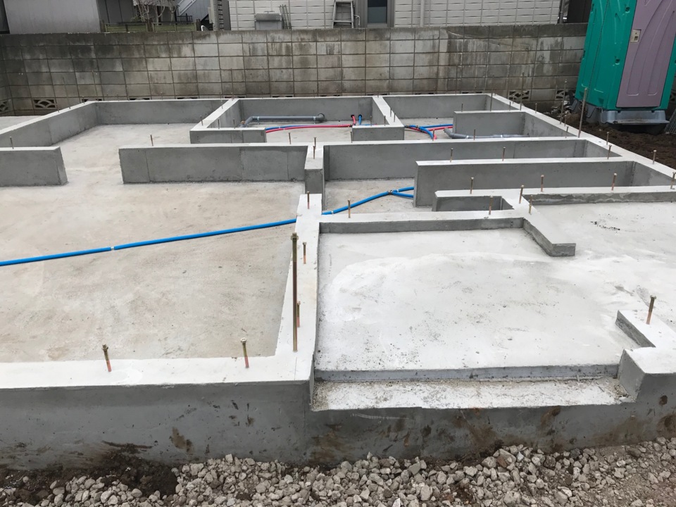 建物が建ってからだと外部工事がしにくくなってしまうため先行しておこないます。