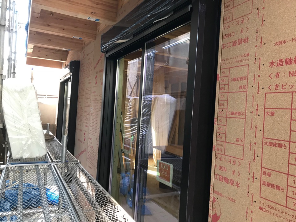 本日、第三者機関による検査とサッシの取付をおこないました。