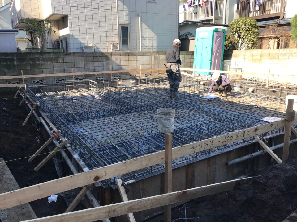 捨てコン施工が完了し、配筋工事が開始しました。