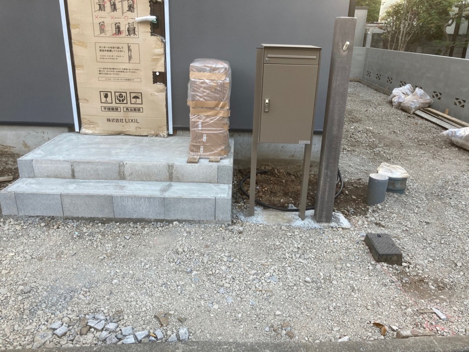 玄関ポーチ・ポスト・インターホンポールが設置されました。