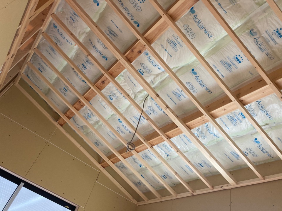 断熱材施工中です。