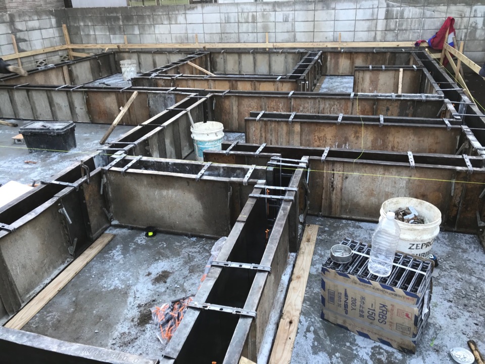 本日、立上りの枠組をおこないました。