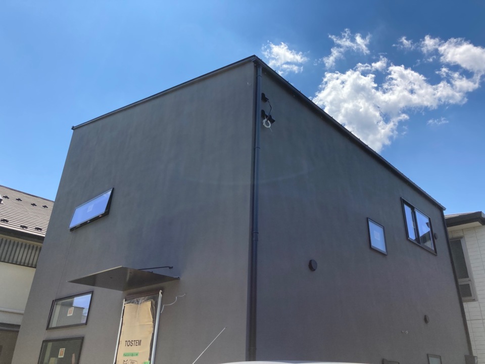 吹き付け・雨樋取付が完了し、足場を解体しました。