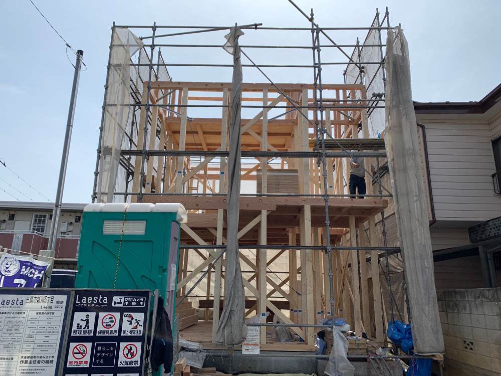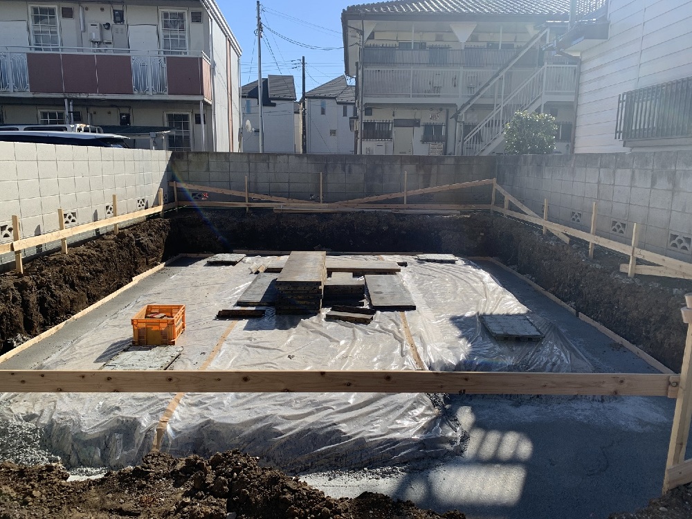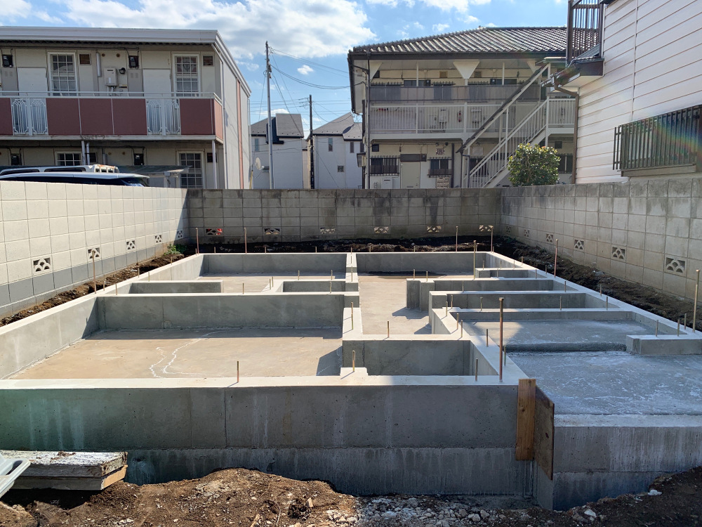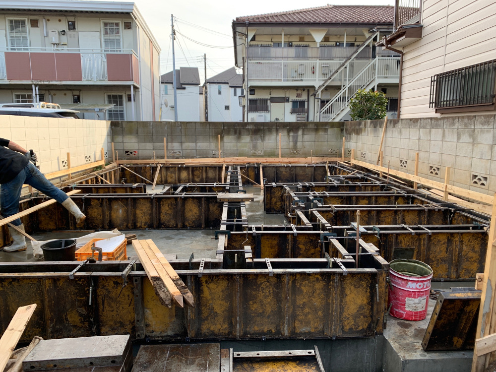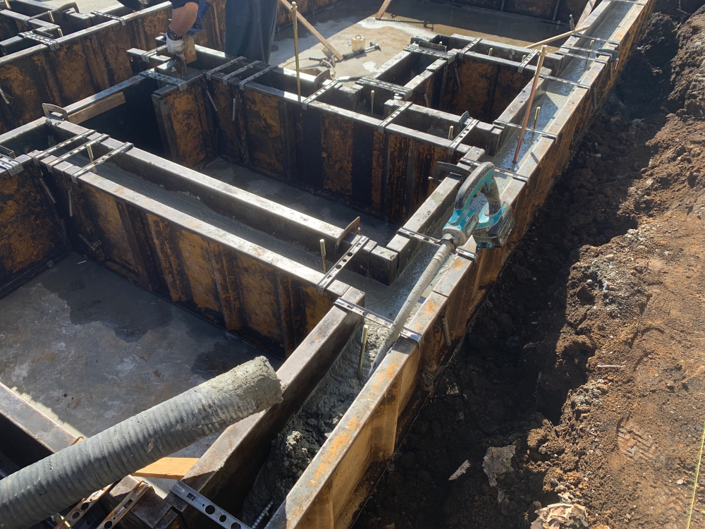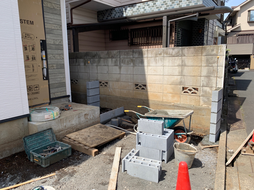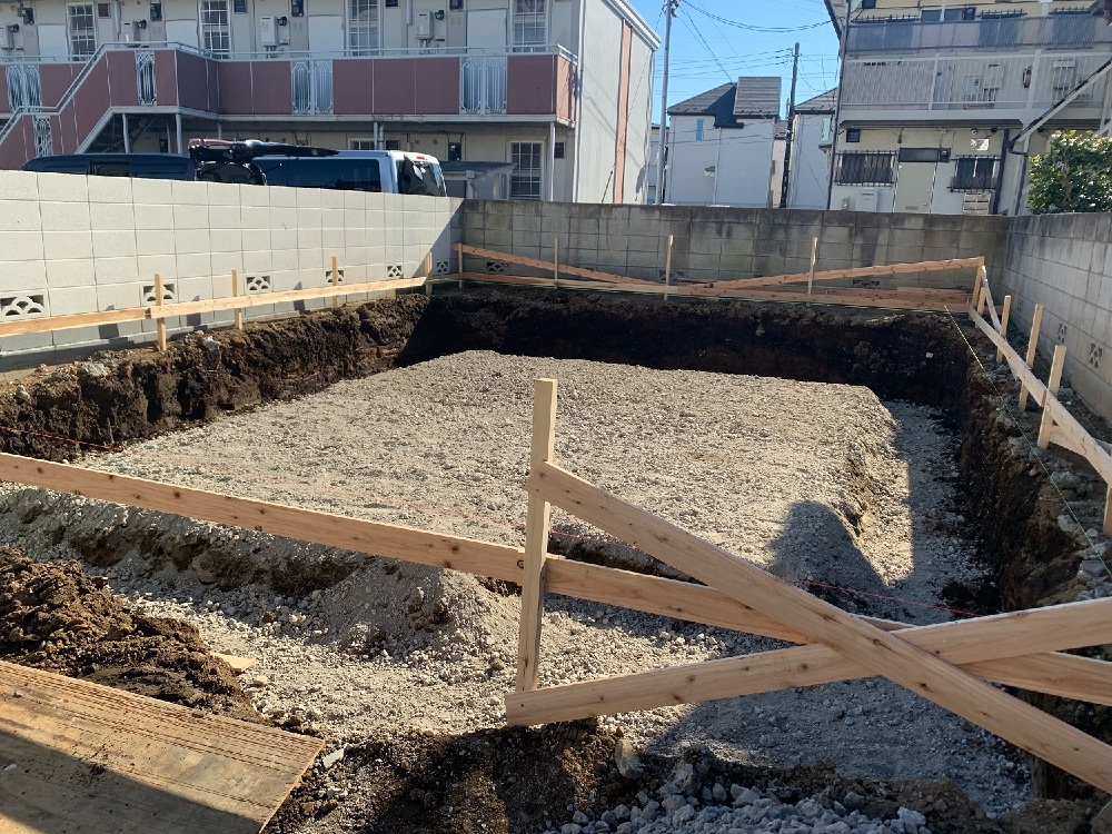 倒れたりゆがみが出ないように固定をして固めていきます。