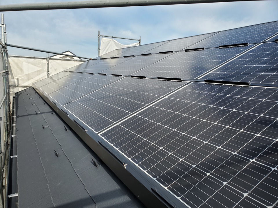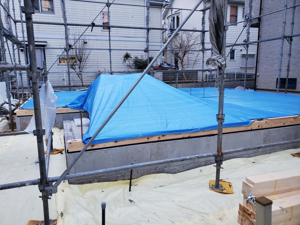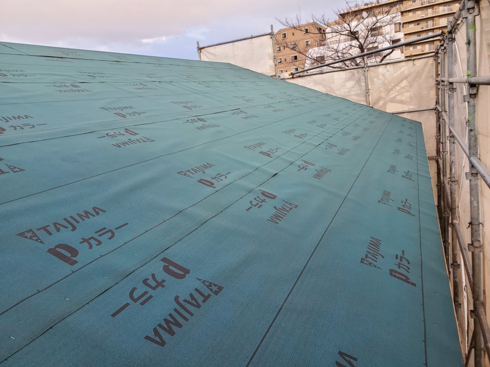 ルーフィングとは屋根の下地材(構造用ベニヤ)を施工した上に張り広げる防水シートのようなものです。