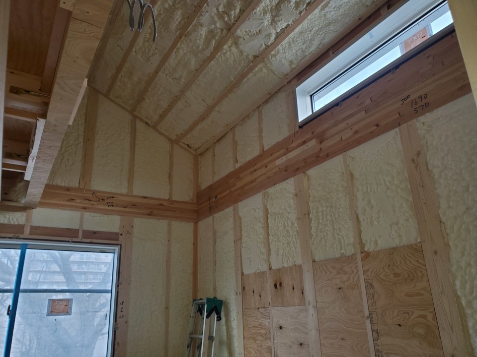 本日、断熱工事 吹付を行いますので、空気層を設ける為、下地の工事を行いました。
