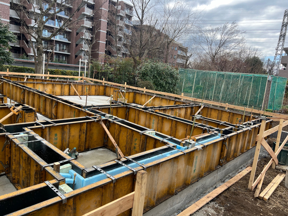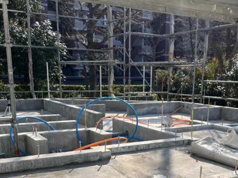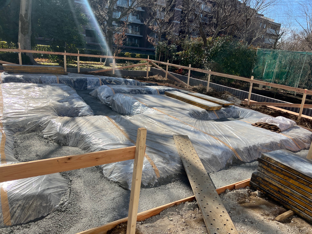 鉄筋を組んでいく際の墨出しや枠材の固定等に必要な工程です。