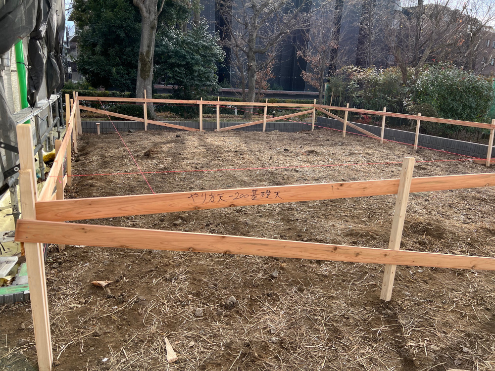 この遣り方とは、基礎工事に重要な情報が示されている囲いの様なものです。