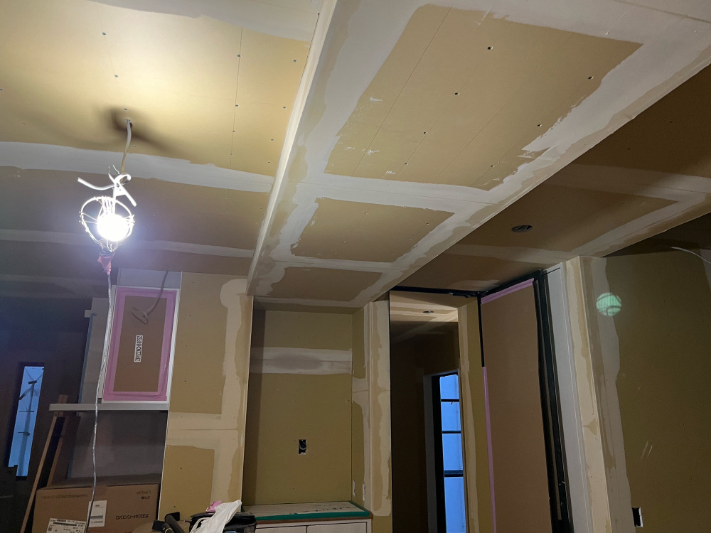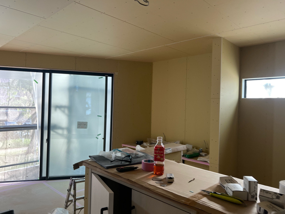 壁紙を貼る前に下地処理をまずします。石膏ボードの継ぎ目の部分にパテを埋めてペーパーをかけ段差が出来ないように平らにしておきます。