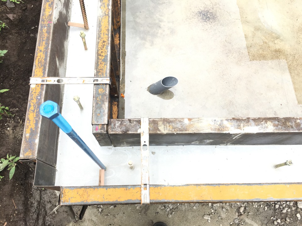 しっかりとレベルを確認し、土台連結用のアンカーボルト・ホールダウン用のアンカーボルトを指定の位置に設置します。