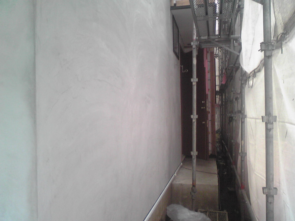 外壁工事ですが、左官工事と吹付工事とガルバリウムと言う板金工事のコラボになります。
