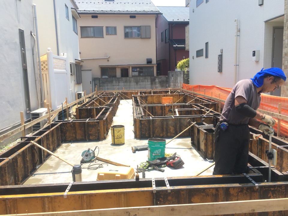 今回の現場は配筋構造がとても複雑なので職人さんも大変だと思いますが、暑い中頑張ってくれています。