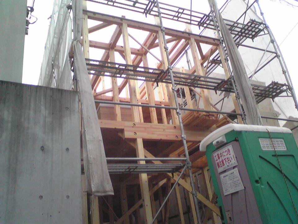 お天気も良好の中、作業完了です。家のかたちが見えてきました!