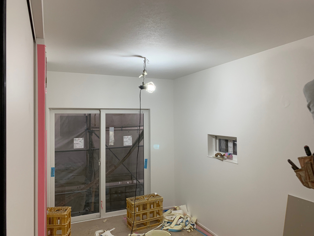 仕上のクロスを貼ると一気に部屋らしくなっていきます。