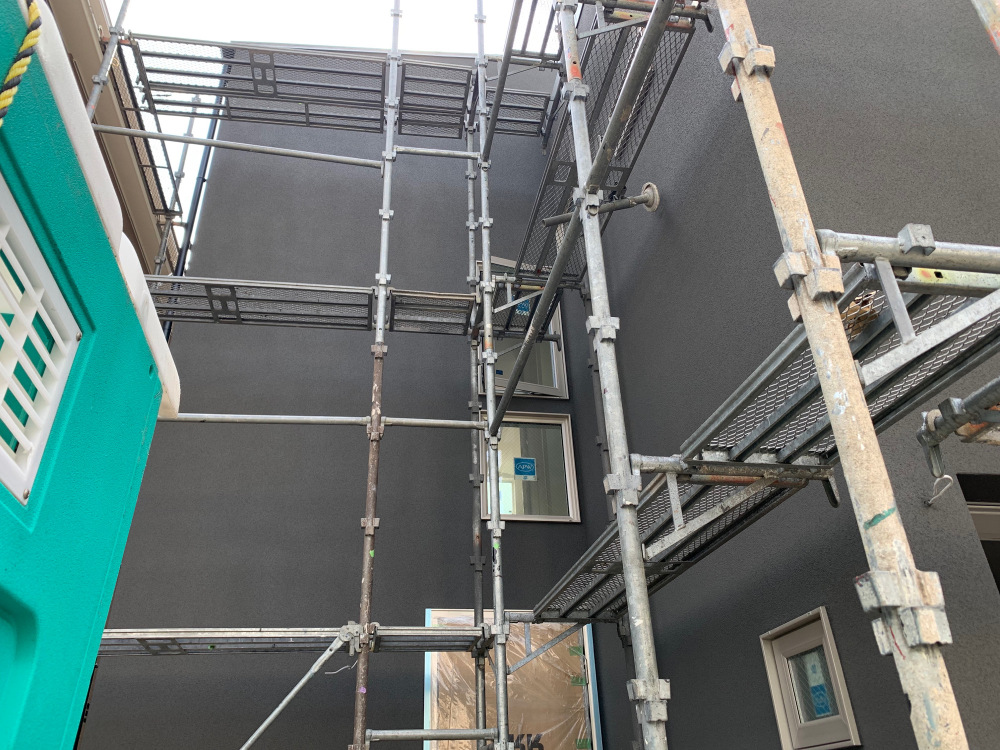 外壁工事が完了しましたので、仮設足場を解体しました。