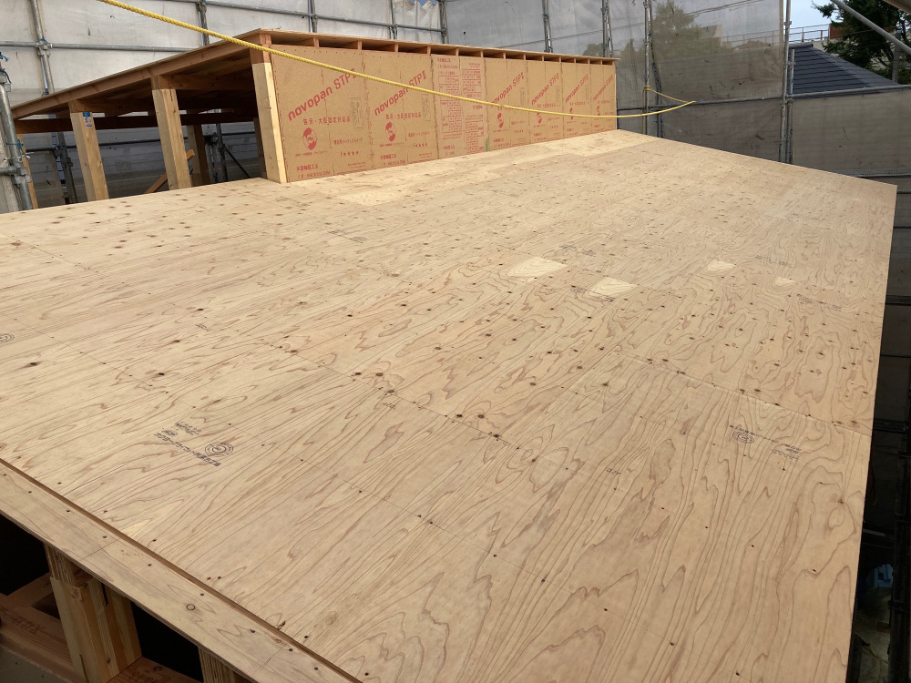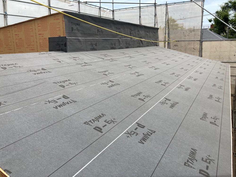 野地板の施工が完了すると、ルーフィング材を敷き込みます。