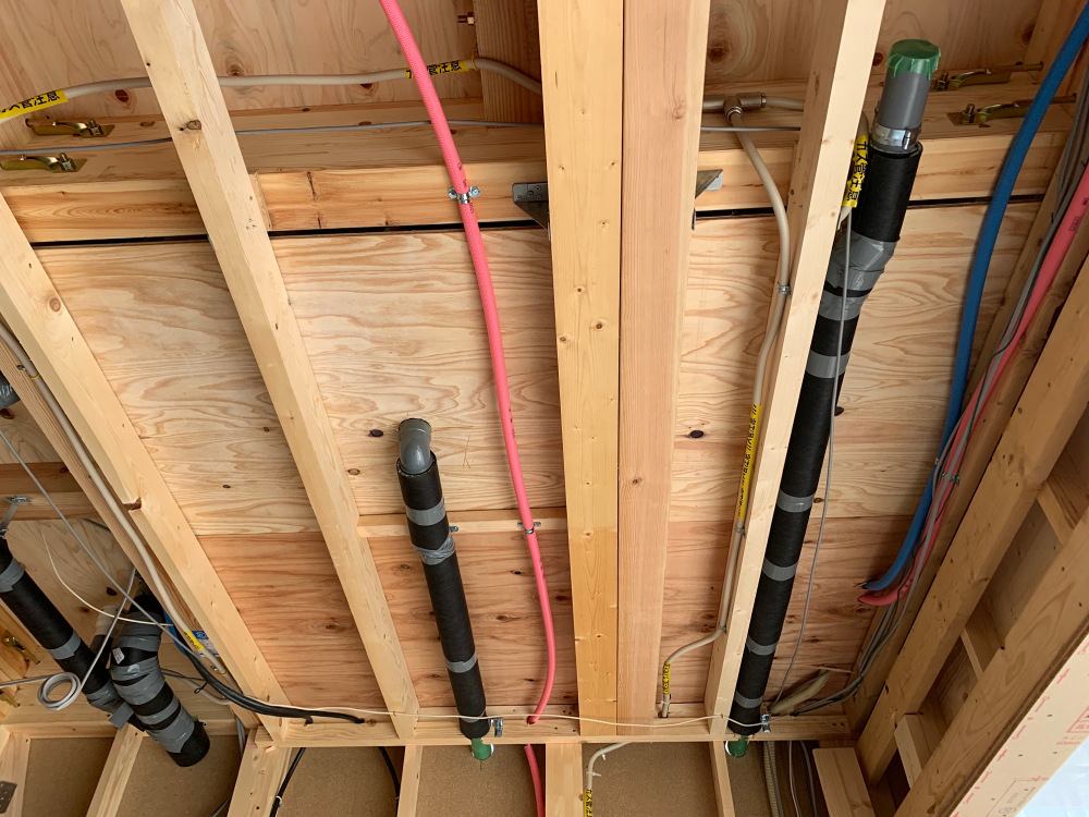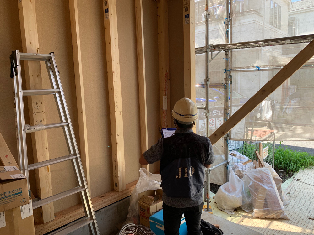 指定の位置に構造金物がついているか耐力壁の釘のピッチは、正確に打たれているかチェックを受けます。