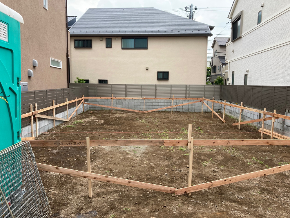 遣り方とは、敷地に対する基礎の配置や高さ、幅などの情報を基礎屋さんに伝えるために作る囲いのようなものです。
