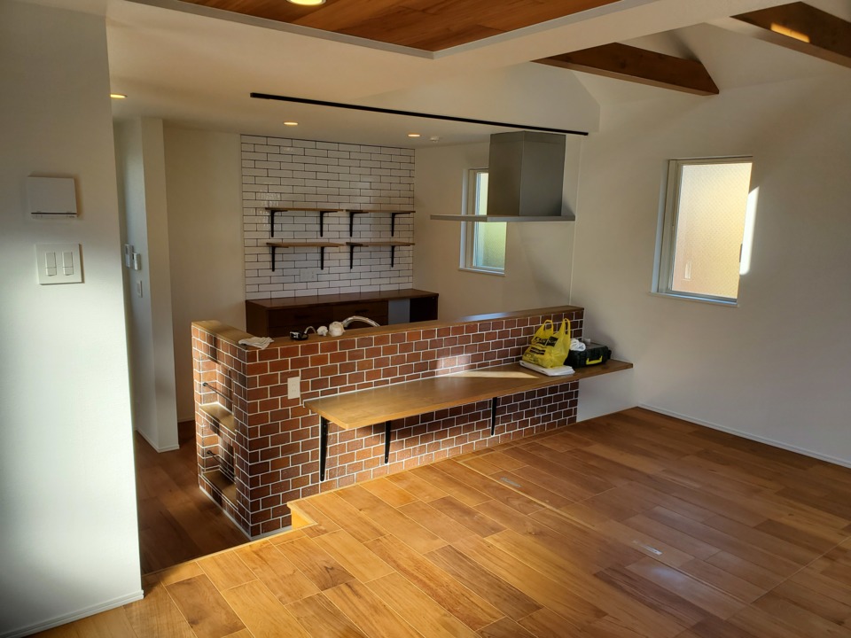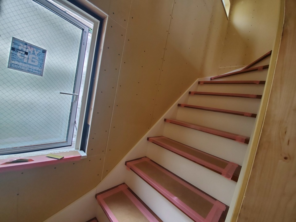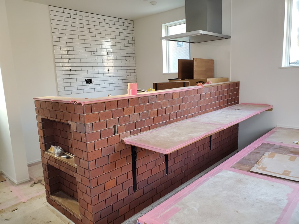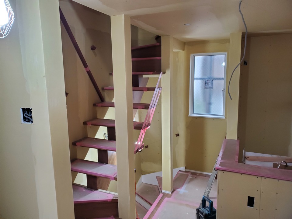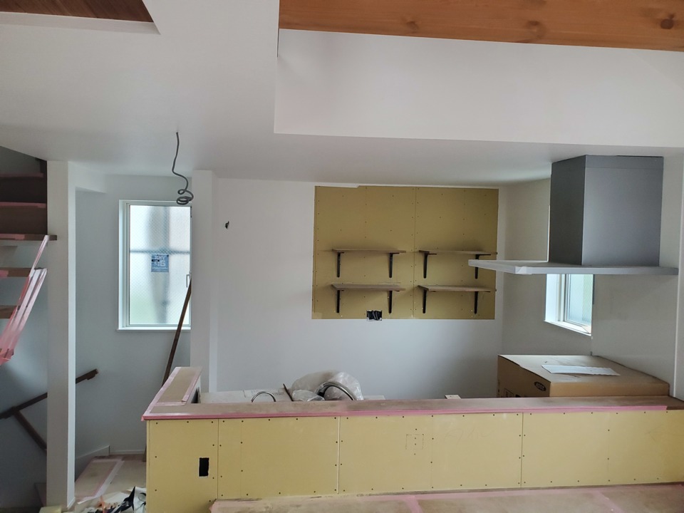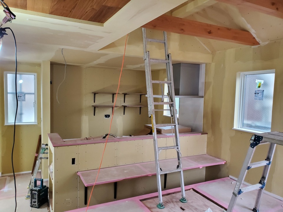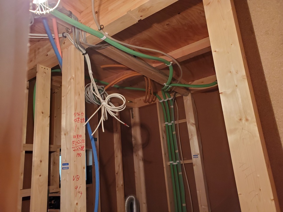 次工程として、石膏ボードの所にタイル工事を行い、器具付けへと進みます。