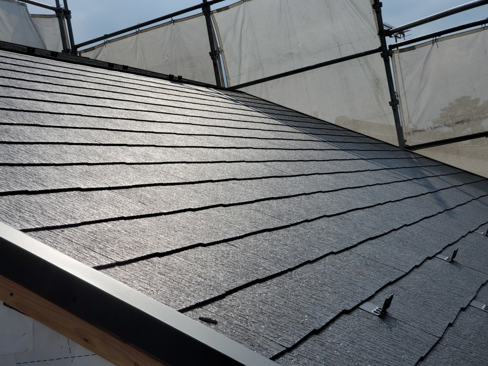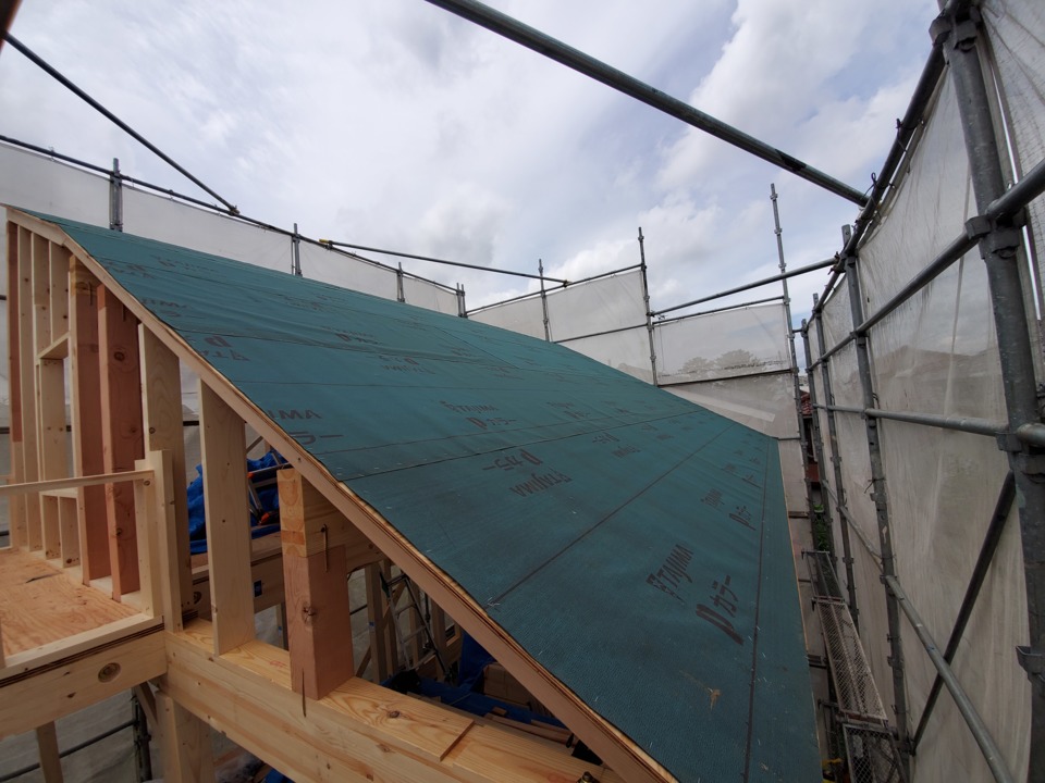 ルーフィングとは屋根の下地材(構造用ベニヤ)を施工した上に張り広げる防水シートのようなものです。