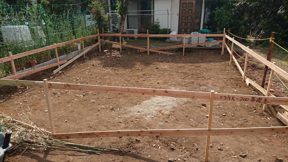 基礎工事施工に必要な工程で、敷地に対する建物(基礎)の配置・基礎の高さ、幅、直角などの情報をわかるようにする囲いの様なものです。