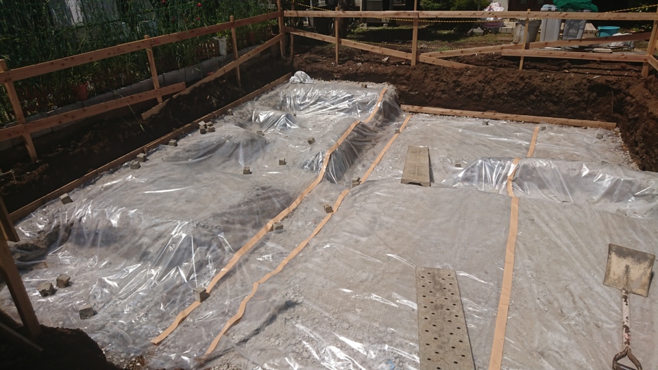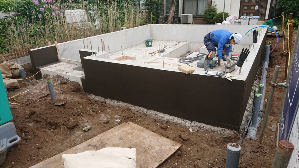 基礎工事が完了し、基礎の防水工事に移行しました。