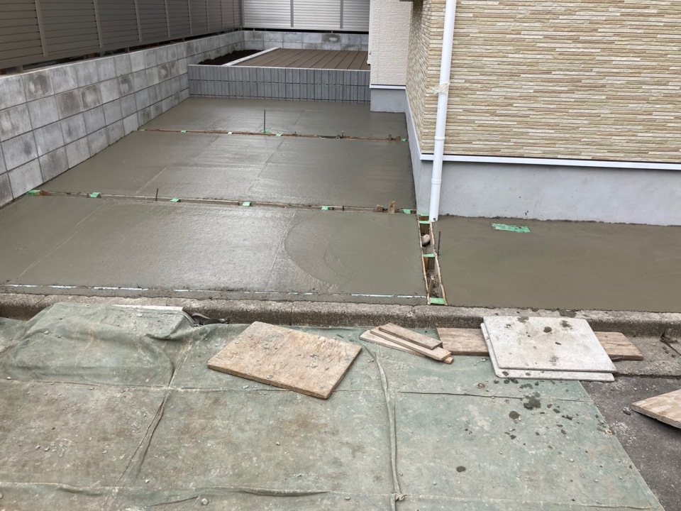 転圧後、指定の部分に捨てコンクリートを打設します。