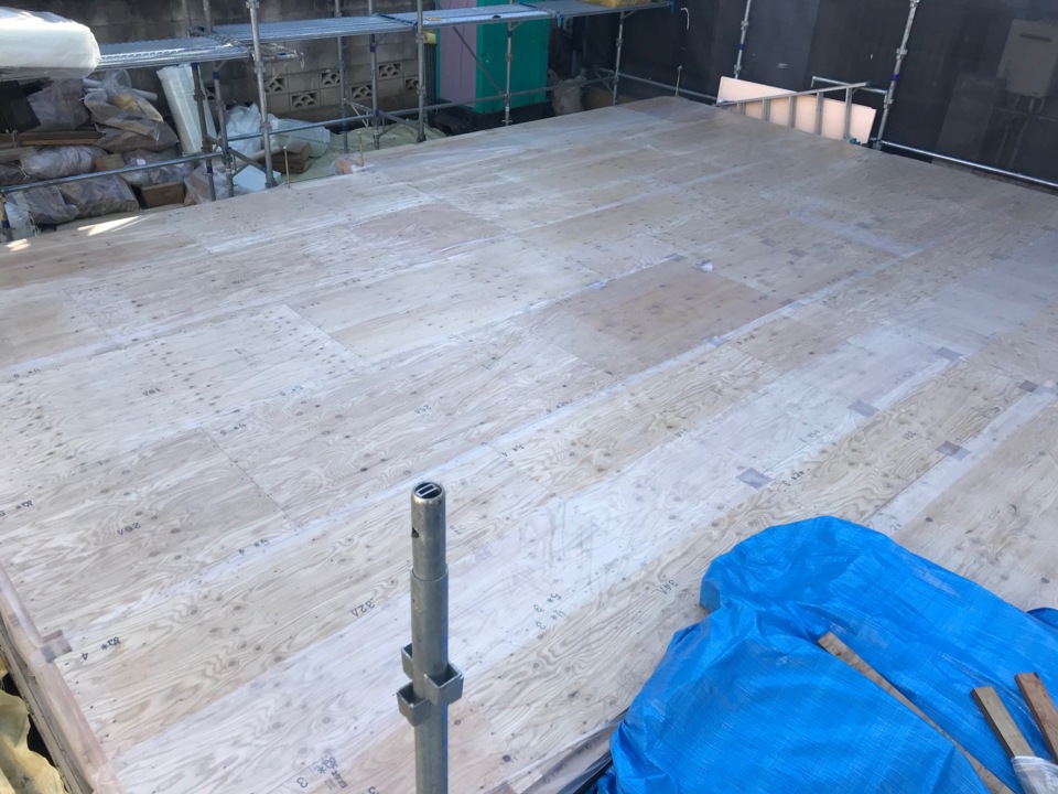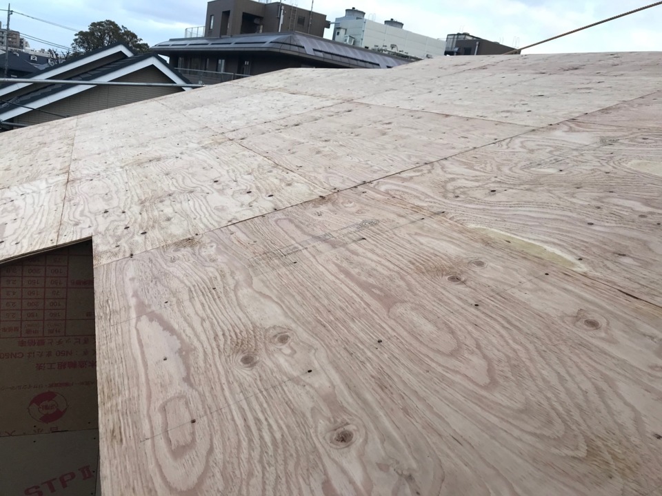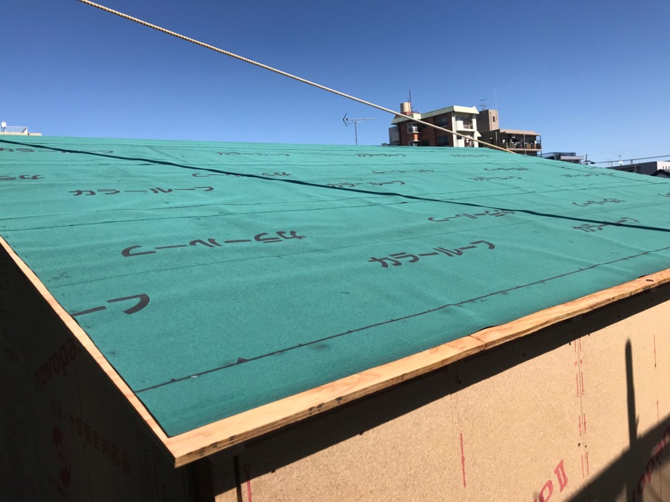 次は、屋根屋さんにルーフィングを貼ってもらいます。