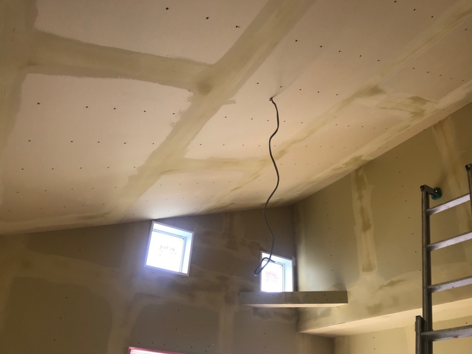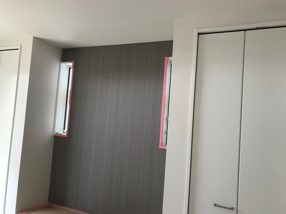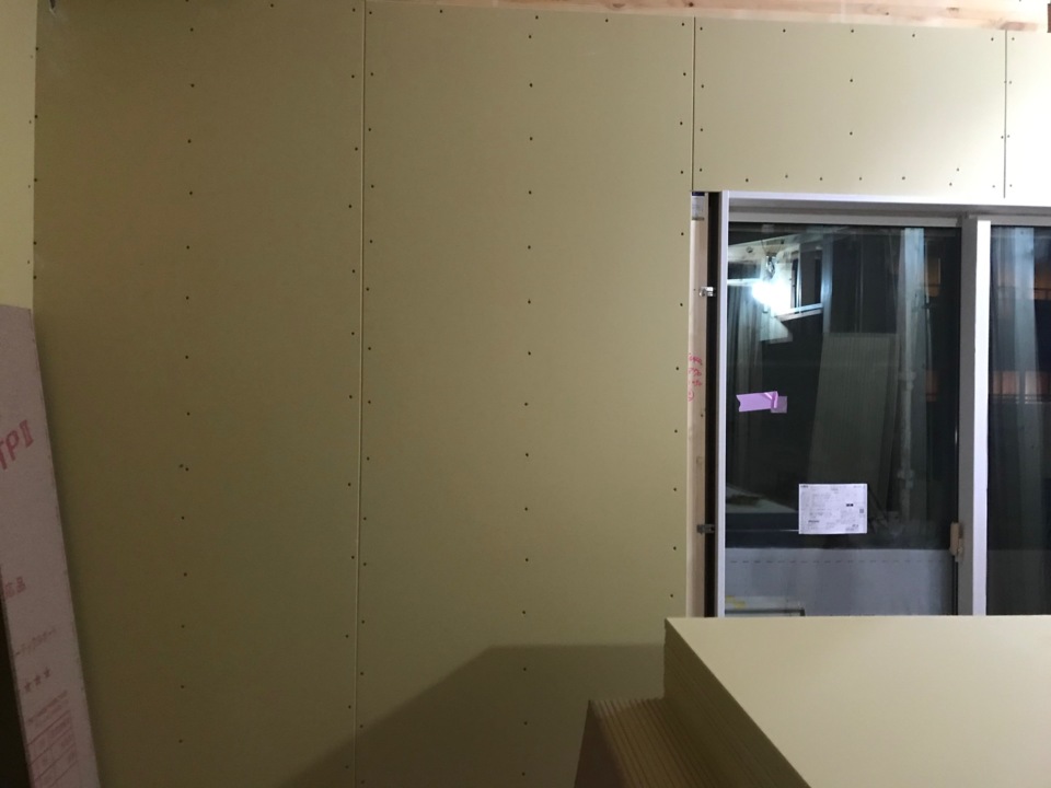 壁紙を貼る前に下地処理をします。石膏ボードの繋ぎ目の部分にパテを埋めて、ペーパーをかけ段差ができないように平らにします。