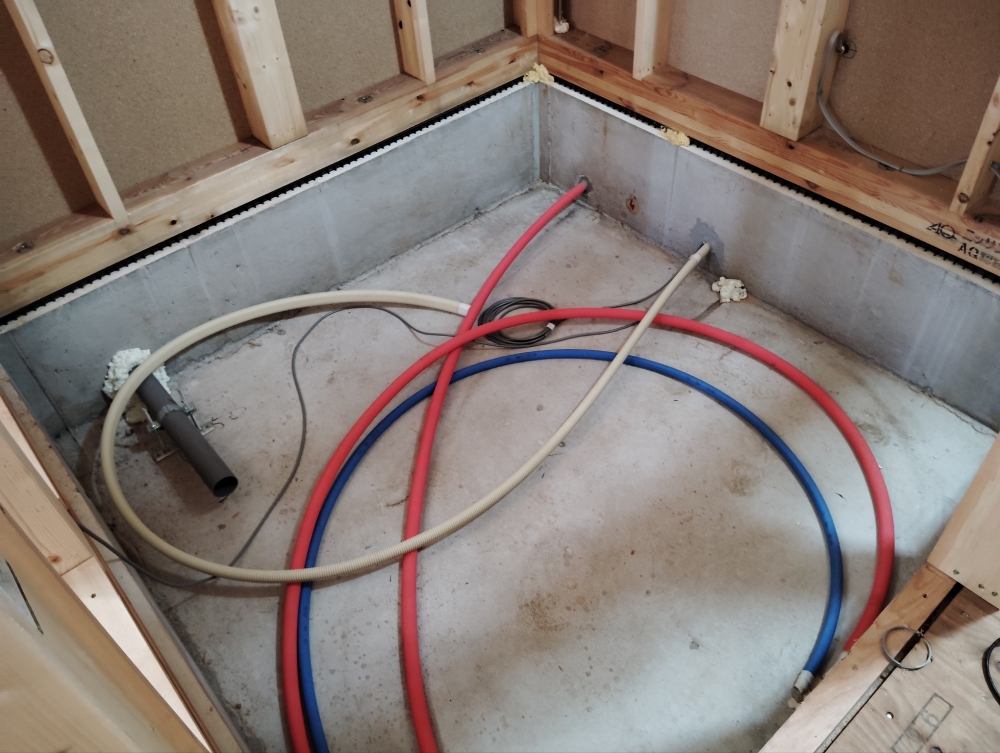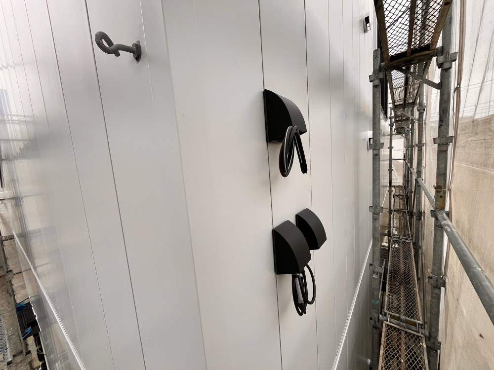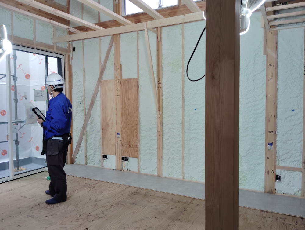 先日施工した断熱材が規定の厚みで隙間なく施工されているかチェックしてもらいます。