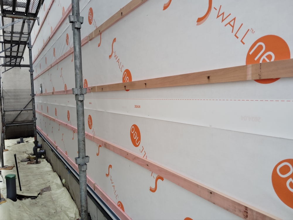 仕上げの外壁材と壁との間に通気用の空間をあけるために取り付けられます。