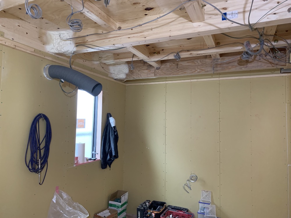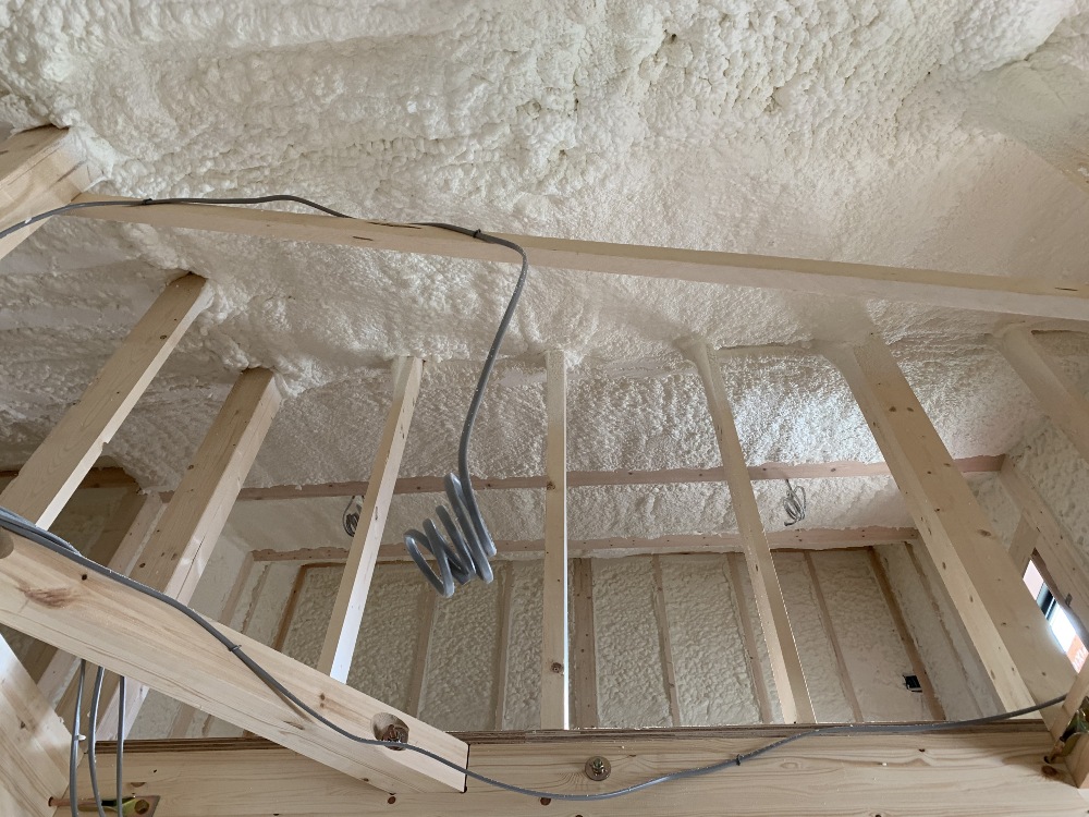 断熱の吹付工事をおこないました。