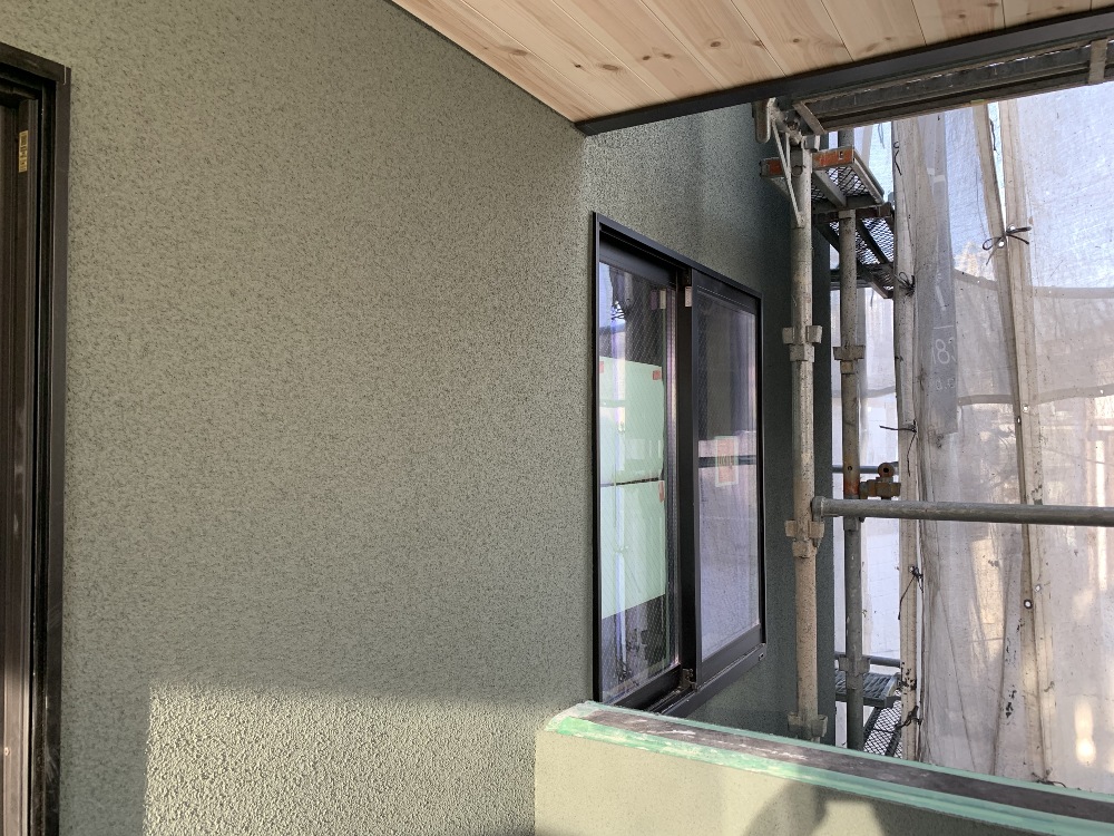 外壁の塗装が終了しました。養生期間を設け、まもなく足場解体となります。