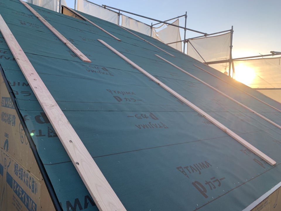 本日、ルーフィングが施工されました。
