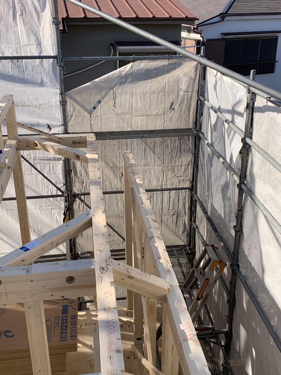 本日、上棟作業をおこないました。